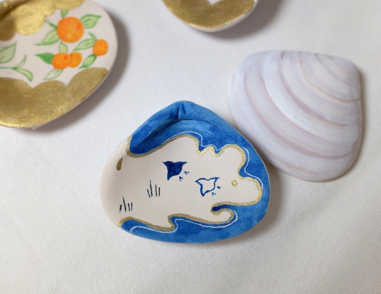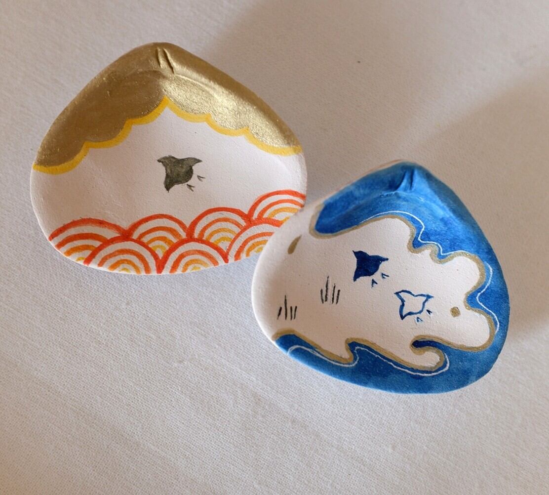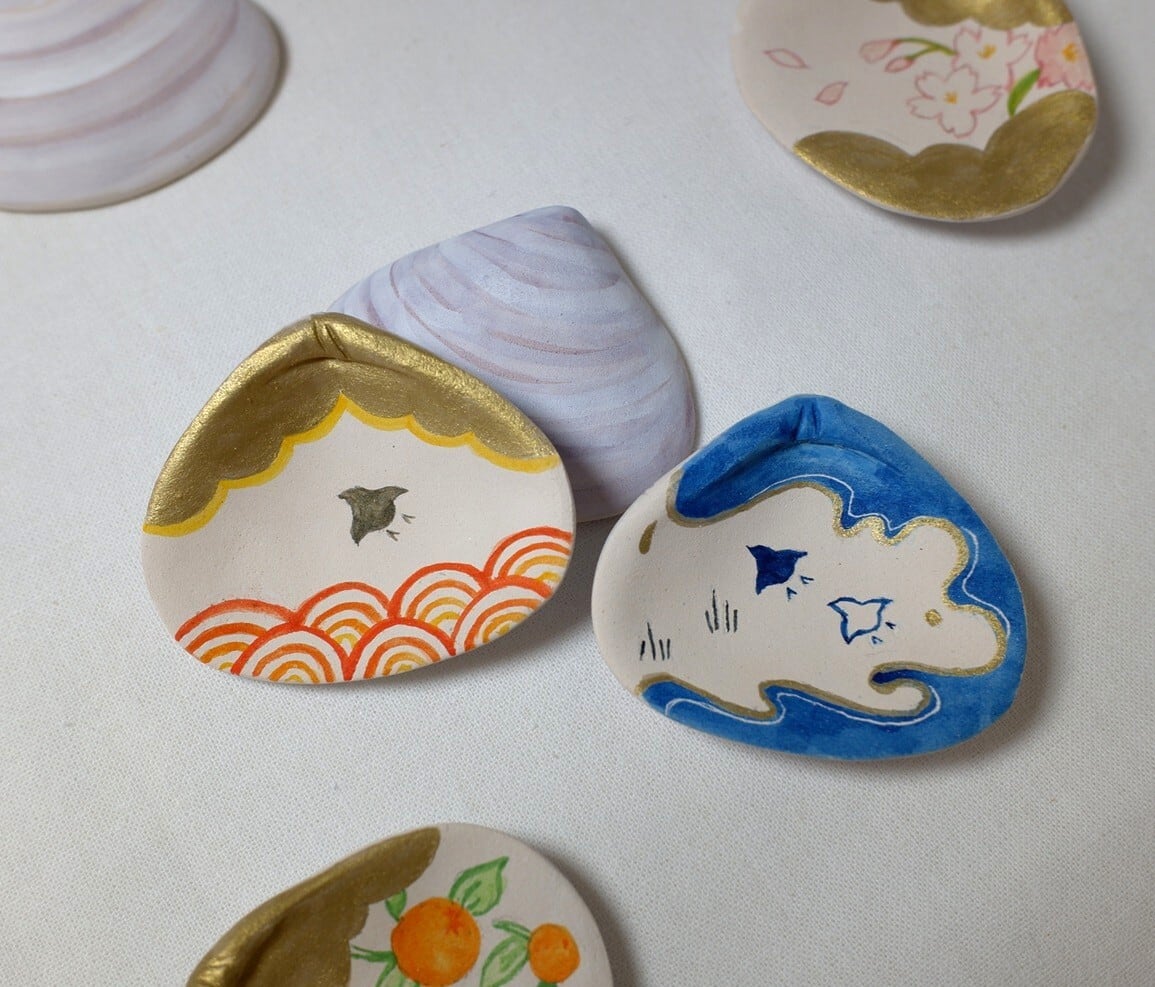 ペア同士を重ねるとぴったり合うよう制作しているため、実際に貝合わせとして遊んでいただけます。