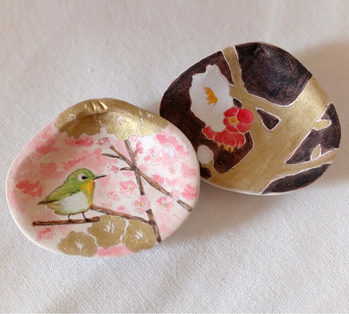 ペア同士を重ねるとぴったり合うよう制作しているため、実際に貝合わせとして遊んでいただけます。