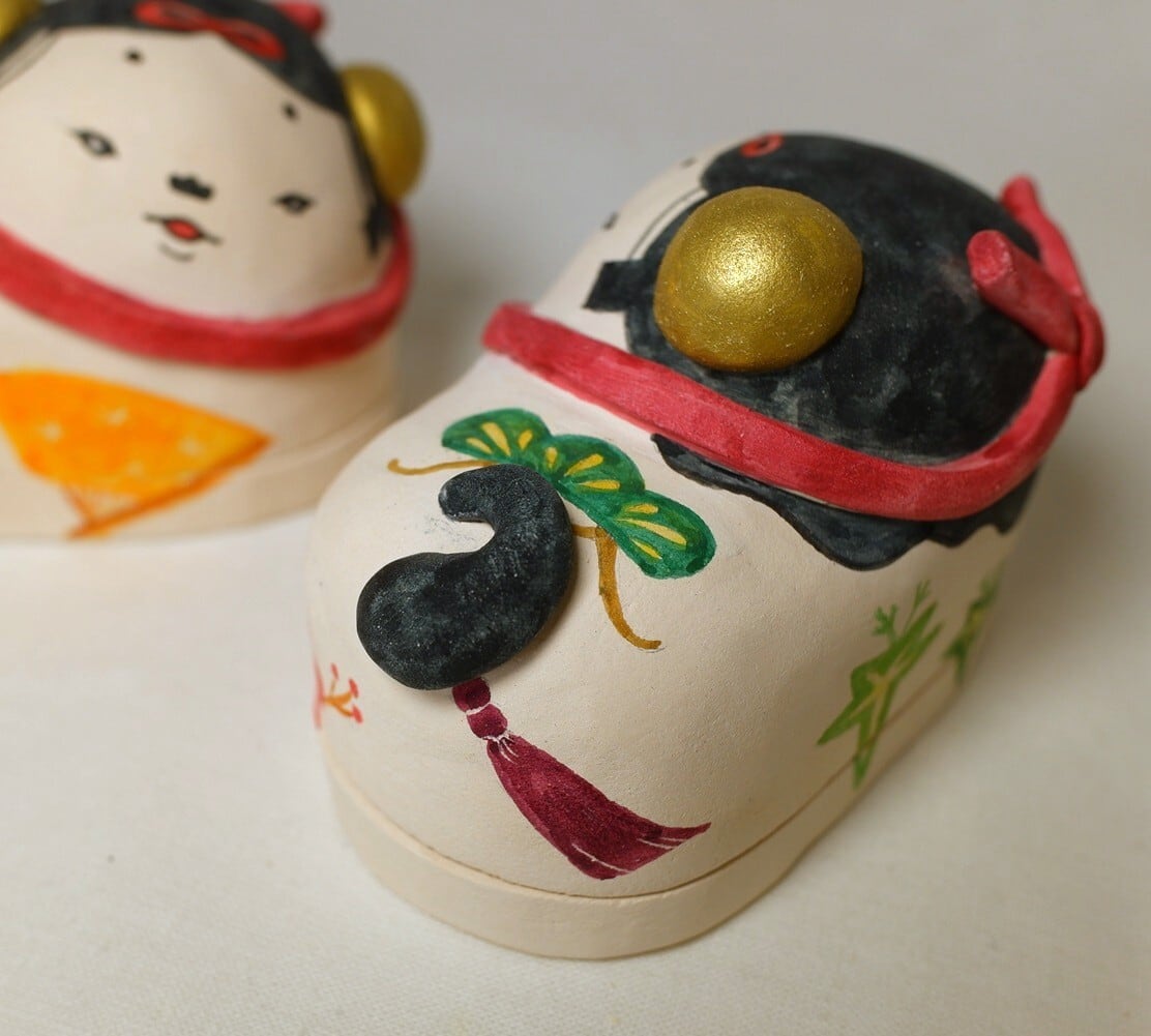犬筥とは、おひなさまとともに飾る、張り子(紙)でできた箱のこと。
